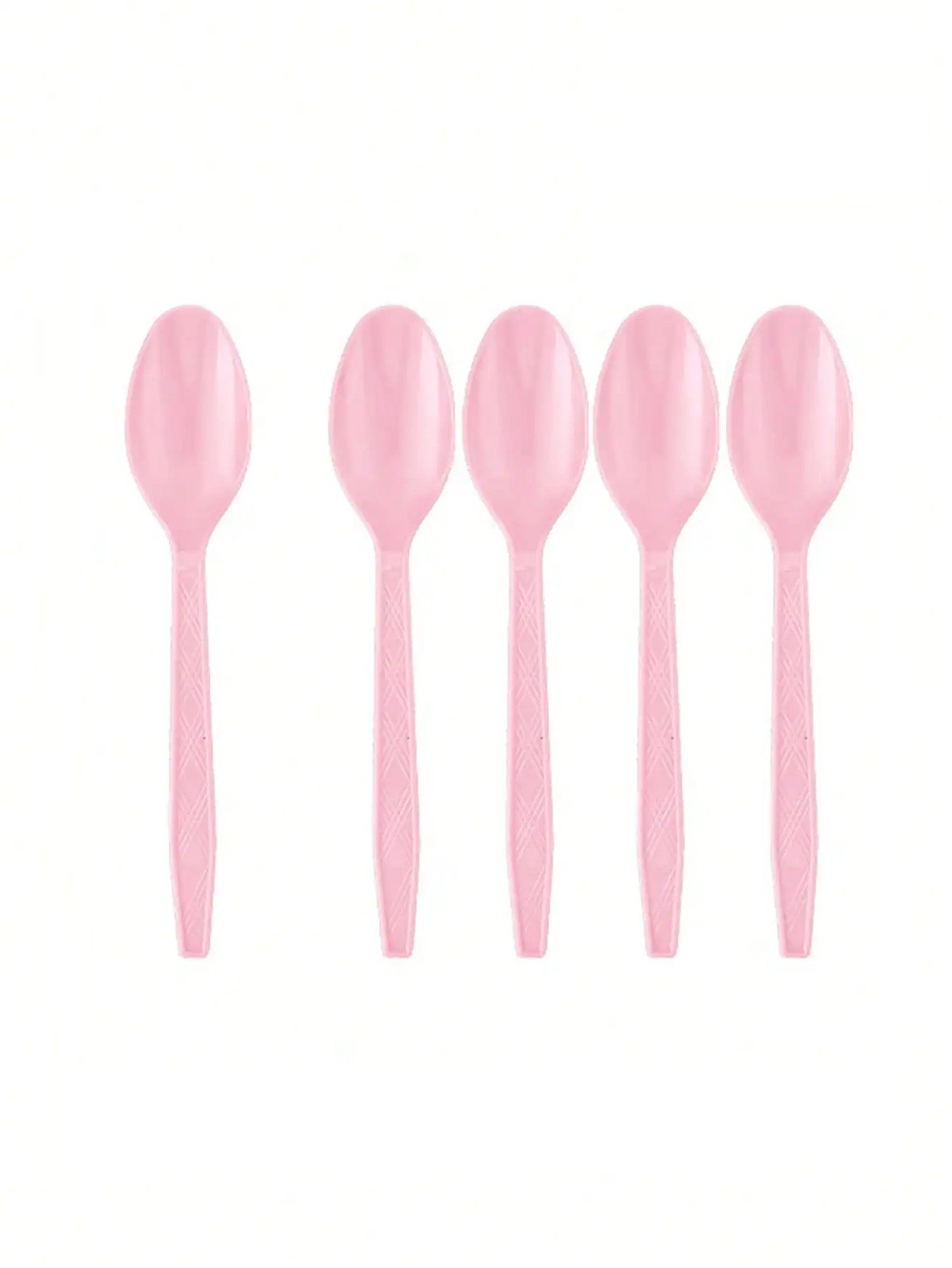 - Sæt med 10 lyserøde plastskeer
