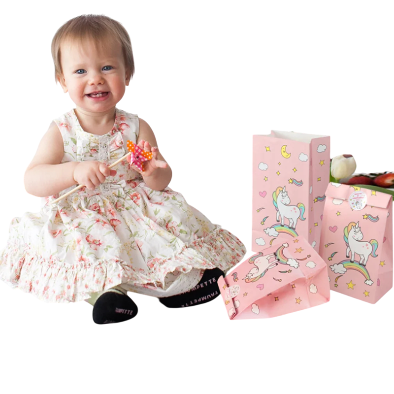 Denne lyserøde papirpose med enhjørningemotiv er det perfekte supplement til enhver børnefest, fødselsdag eller temafest. Fremstillet af kvalitets kraftpap, som er solidt, miljøvenligt og sikkert til kontakt med fødevarer. Dimensioner 12 x 8 x 22 cm er ideelle til indpakning af små gaver, småkager, slik, popcorn eller små legetøj. Hver pose prydes af farverigt enhjørningemotiv, som giver hver fest en magisk atmosfære.