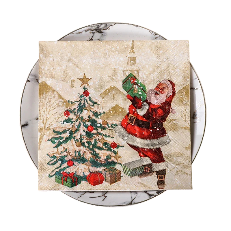 Forside Forside Hjem og husholdning Dekoration og boligtilbehør Julepynt 20 stk Beige papirservietter 33 x 33 cm 2 lag Julemotiv Santa Claus Dekorative julebordservietter Vandbaseret blæk