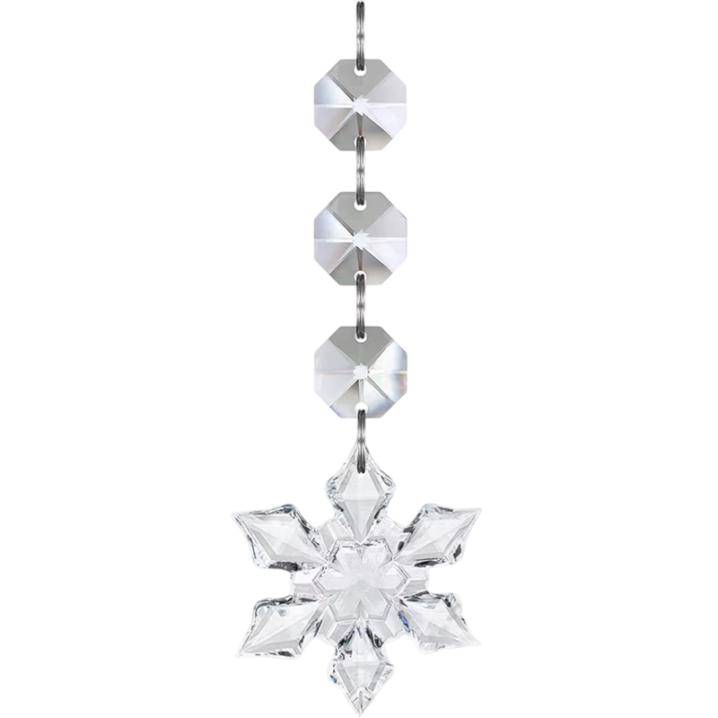Klare snefnug med krystaleffekt giver udsmykningen en fin vinterlig elegance, ideel som hængende julepynt. Fuld beskrivelse