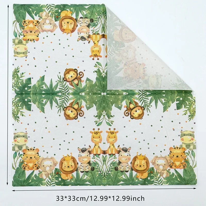 20 stk Papirservietter 33 x 33 cm 2 lag Servietter med jungle og dyremotiv Dekorative børneservietter til fødselsdagsfest