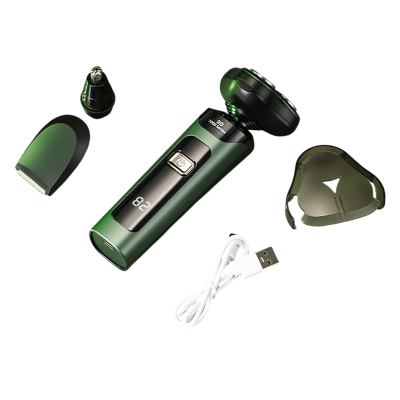 3-i-1 elektrisk barbermaskine med display Vandtæt Skæg-, næse- og bakkenbartertrimmer USB-opladning Flydende hoved LED-indikator