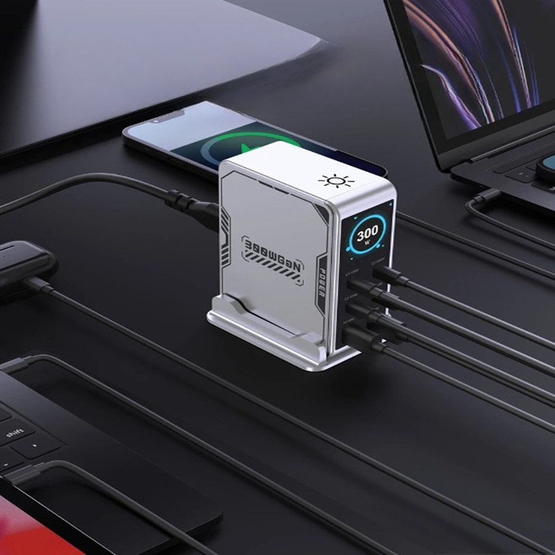 Denne kompakte og højtydende 300W GaN opladerstation Ubigbuy er designet til brugere, der har brug for pålidelig og hurtig strømforsyning til flere enheder samtidig. Takket være GaN-teknologi af nyeste generation tilbyder den høj effektivitet, lavere opvarmning og mindre størrelse. Stationen indeholder fire USB-C porte med understøttelse af PD 100W og PPS 3,3–21 V / 5 A, ideel til bærbare computere, tablets og telefoner. To USB-A porte leverer op til 60 W. Den digitale skærm viser den aktuelle effekt for hver port.