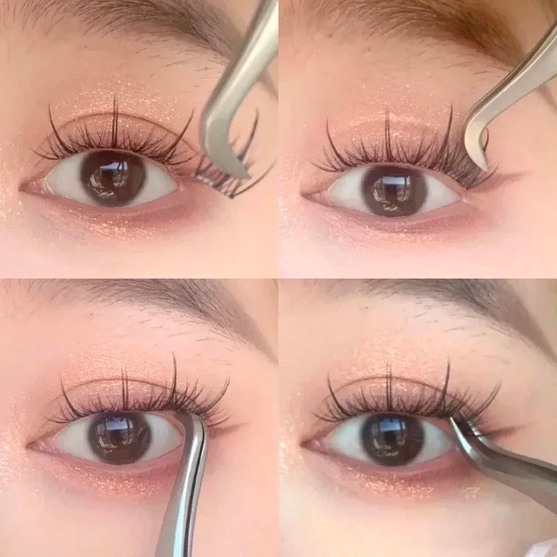 3D katte klæbende bundter af vipper 11 mm 36 stk dobbelte tætte bundter i 6 rækker Vandafvisende langtidsholdbare kunstige vipper med præcisionspinset