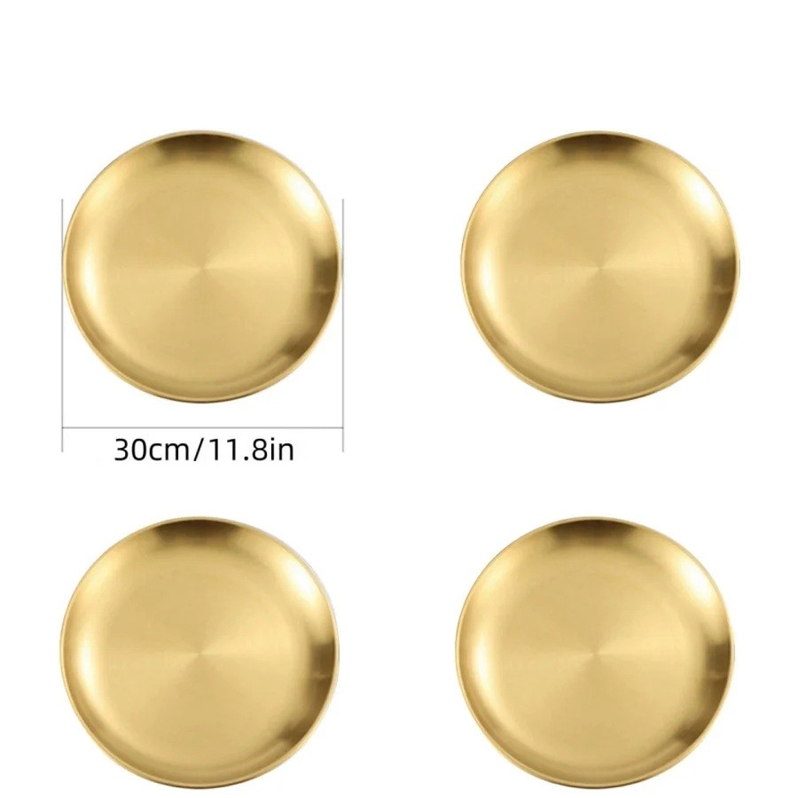 4 stk. tallerkener i rustfrit stål 30 cm Gyldne køkkentallerkener stort diameter til servering af hovedretter festligt borddækning