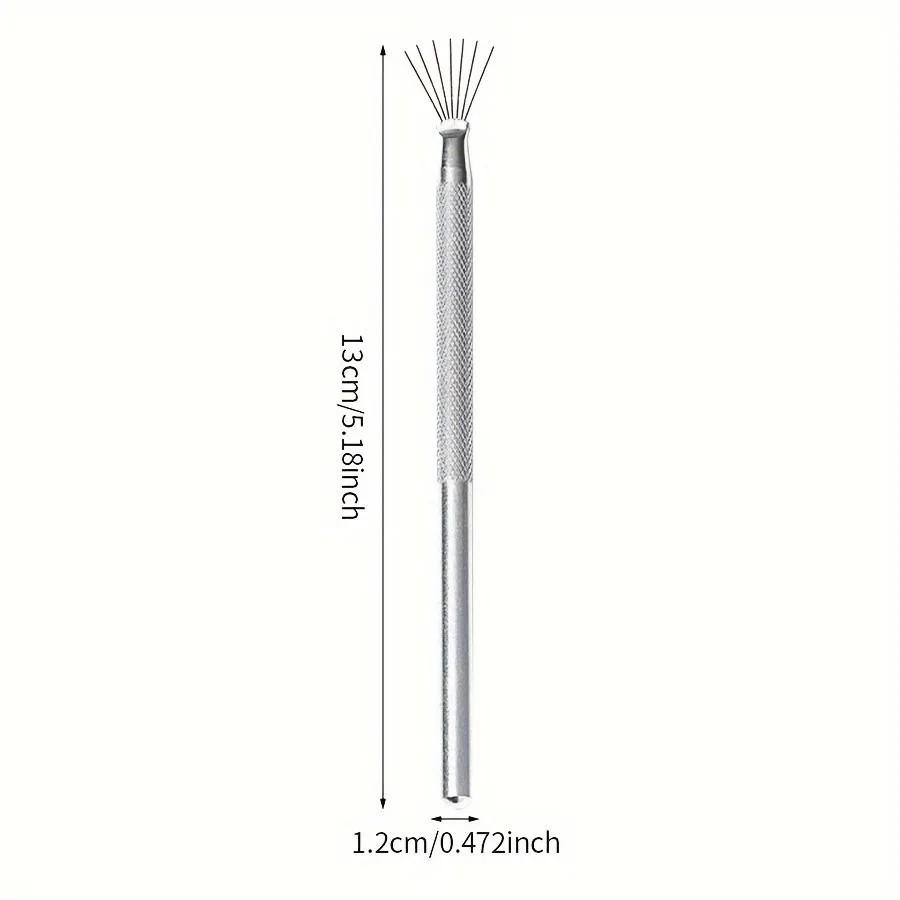 7-pin manikyrværktøj til 3D dekoration og neglemaling 1,2 x 13 cm Luksus ultratyndt stålpen til professionelt design Dette professionelle manikyrværktøj er den ideelle hjælper for alle, der beskæftiger sig med 3D dekoration og neglemaling. Pennen er designet med fokus på detaljer og præcision, hvilket sikrer kvalitetsresultater ved skabelsen af krævende designs. Takket være den ultratynde spids er den ideel til fine detaljer og præcise applikationer.