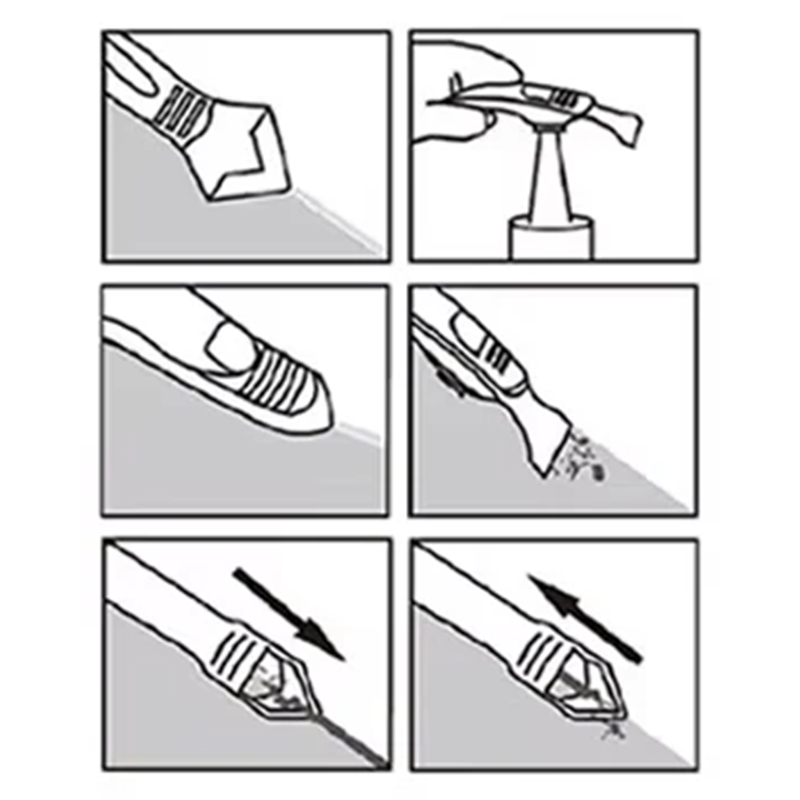 - Multifunktionelt 9v1 sæt – indeholder forskellige værktøjer til fjernelse, skæring og glatning af silicone.