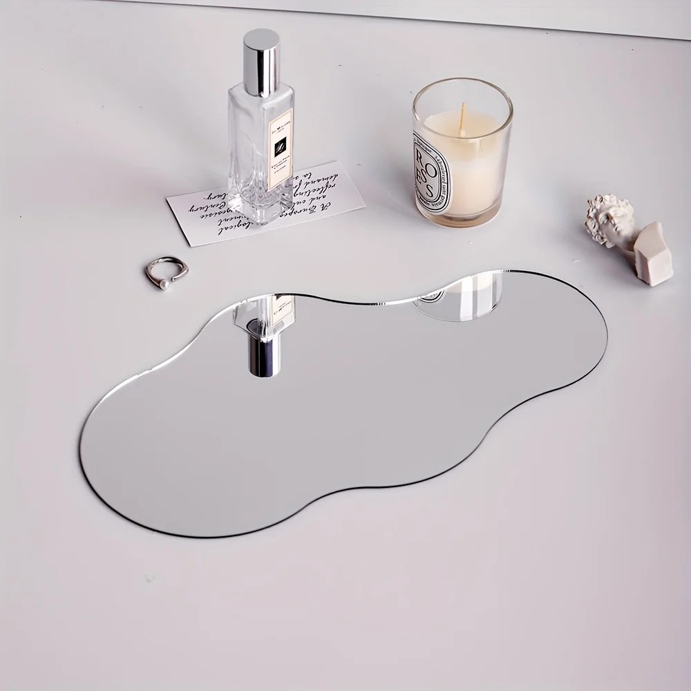 Forside Forside Hjem og husholdning Dekoration og boligtilbehør Små dekorationer Acryl smykkestativ 17 x 30 cm Spejl dekorativt fad i bølget skyform – Fad til kosmetik, stearinlys, tilbehør moderne dekoration