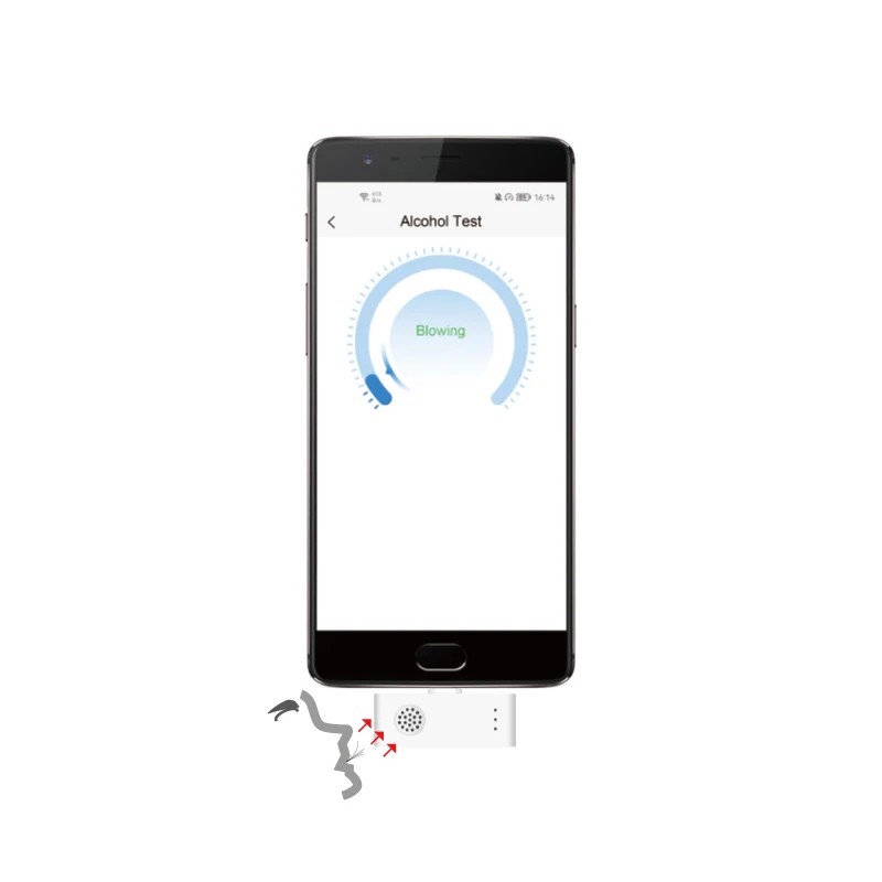 Denne alkoholtester repræsenterer en praktisk kombination af hardware og mobilteknologi i én kompakt enhed. Den direkte strømforsyning fra telefonen eliminerer behovet for opladning eller udskiftning af batterier, hvilket øger komforten ved brug. Takket være forbindelsen til appen har brugeren resultaterne klart tilgængelige og kan nemt følge dem på sin mobile enhed. De små dimensioner og den lave vægt gør den til en diskret hjælper på farten og ved daglig brug. Enheden er velegnet til alle, der ønsker at have hurtig og tilgængelig orienteringskontrol af alkohol altid ved hånden.