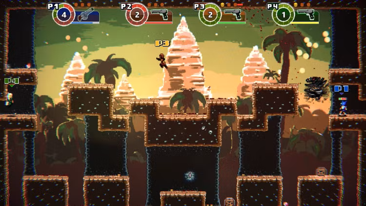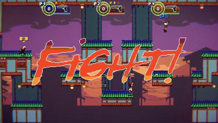 Sørg for at loote kasser med opgraderinger og våben, mens du navigerer i tilfældigt genererede arenaer i lokale kampe eller online multiplayer.