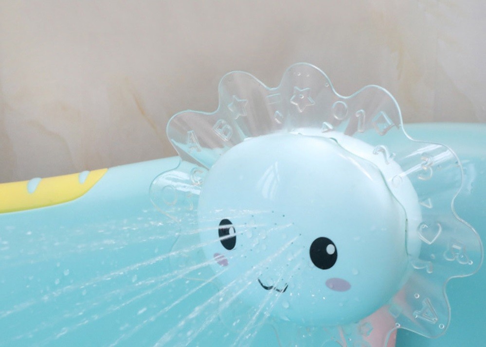 Stik blot den ene ende ned i vandet i badekarret, og hver gang barnet trykker på knappen, sprøjter vandet ud i en behagelig stråle.