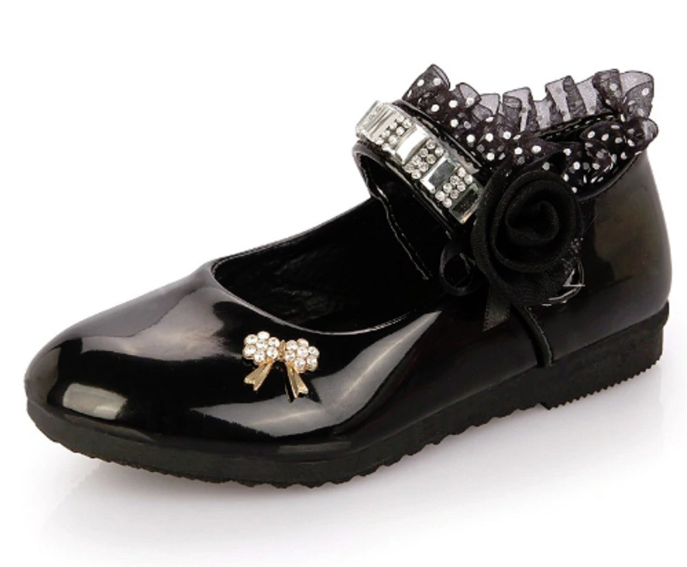 Ballerinaer til piger dekoreret med rhinsten, blonder og roser vil blive elsket af alle unge damer.
