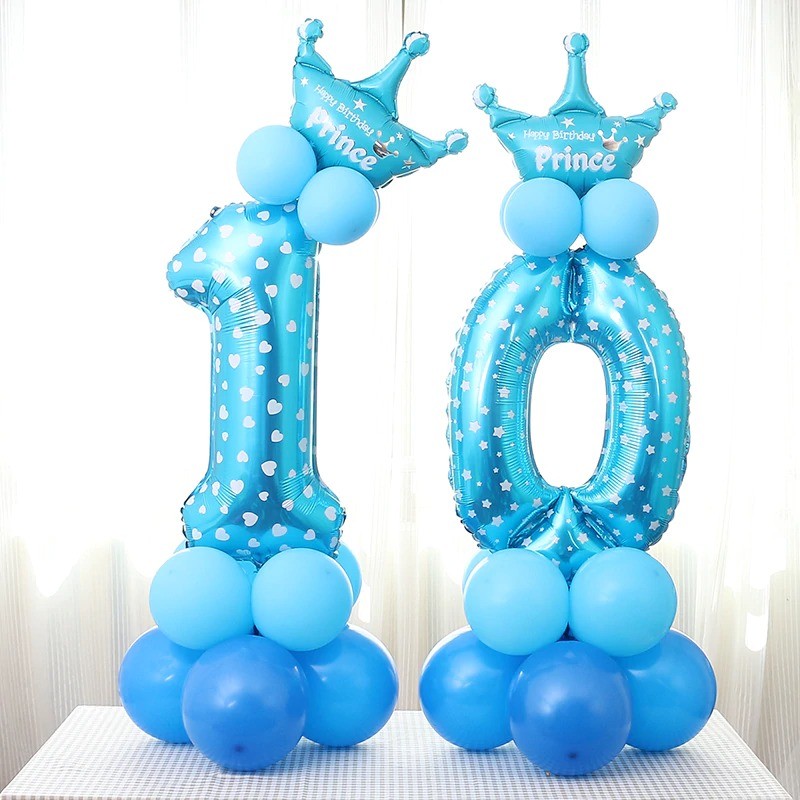 Sæt ballonnummeret på flere små balloner og sæt en krone ovenpå.