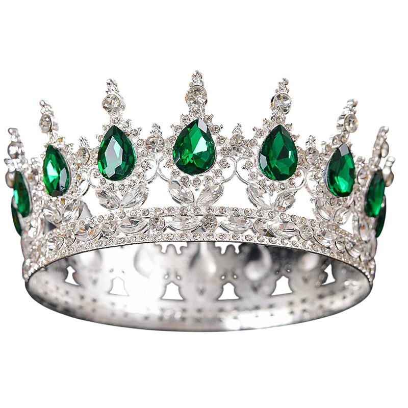 Barok rund sølv bryllup krone med krystaller luksuriøs juvel diadem hovedpryd for brude, dronninger og konger