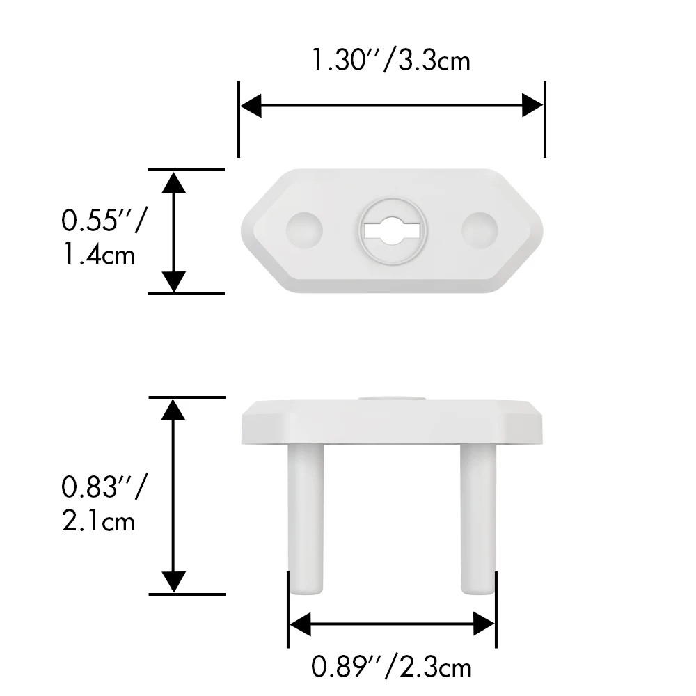 Mål: 3,3 x 2,3 x 2,1 cm Installation er plug-and-play, uden behov for skruer eller lim. Ideel løsning til enhver husstand med små børn.