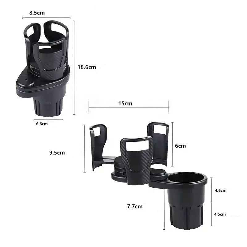Denne justerbare multifunktionelle bilholder til drikkevarer er den ideelle løsning for enhver chauffør, der ønsker at have sine drikkevarer og småting lige ved hånden. Takket være det smarte udvidelsesdesign kan du nemt placere den i den eksisterende drikkeholder i din bil og straks få mere plads. Den sorte farve giver et universelt udseende, der passer til interiøret i de fleste biler. Den justerbare konstruktion gør det muligt at tilpasse holderen til forskellige størrelser af kopper, flasker eller termokopper. Den faste fiksering sikrer, at dine drikkevarer ikke vælter under kørsel og forbliver på deres plads.