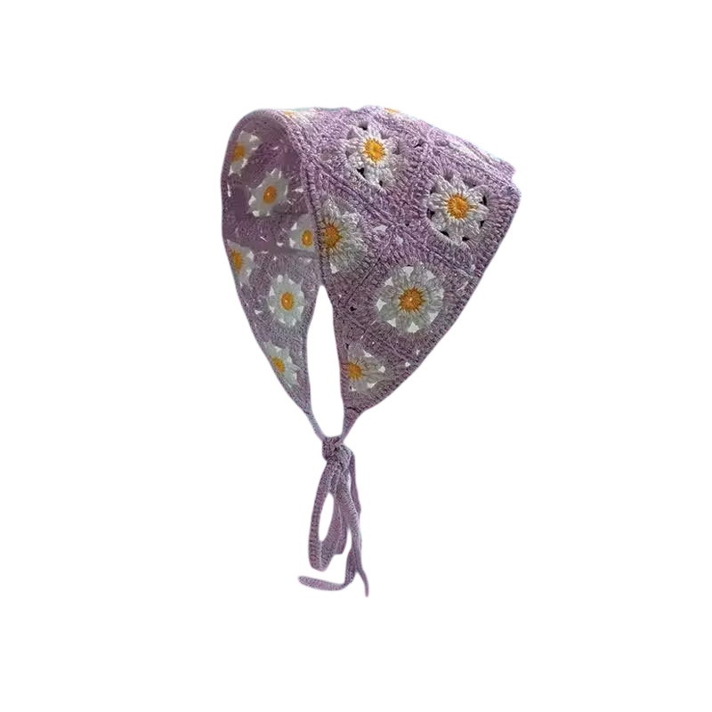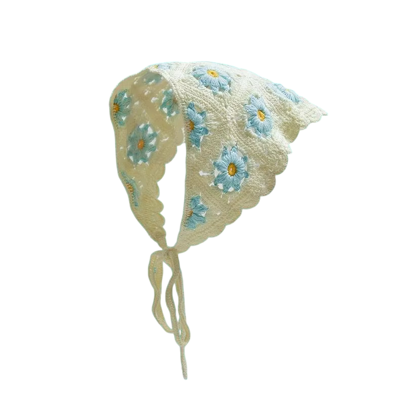 Blomster håndcrochetet trekantet tørklæde Forårs sommer hårtørklæde til kvinder Sødt let hovedbeklædning til rejser