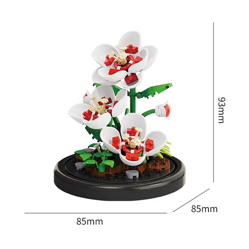 Farverigt mikro byggesæt af hibiscus i potte fungerer som kreativ underholdning, original hjemmeindretning og en ideel gave til både børn og voksne. Fuld beskrivelse
