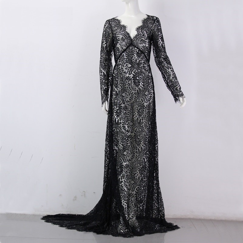 Elegant V-udskæring og langt slæb.