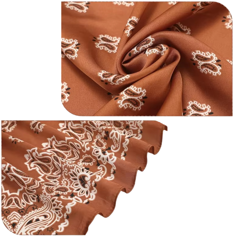 Boho 70 x 70 cm firkantet hovedbånd Silkeeffekt Damehovedbånd Uformelt hovedbeklædning forår sommer stilfuldt tilbehør