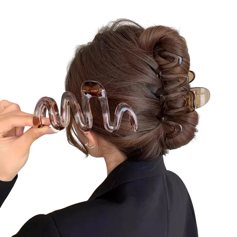 Klipsen er lavet af kvalitetsmateriale, der sikrer lang levetid og pålidelig opsætning af håret. Det specielle bølgede design hjælper med at fordele trykket jævnt, så frisuren holder stabilt og samtidig ser naturlig ud. Den er ideel til hurtig opsætning af en knold, halvfrisure eller simpel opsætning af håret i løbet af dagen.