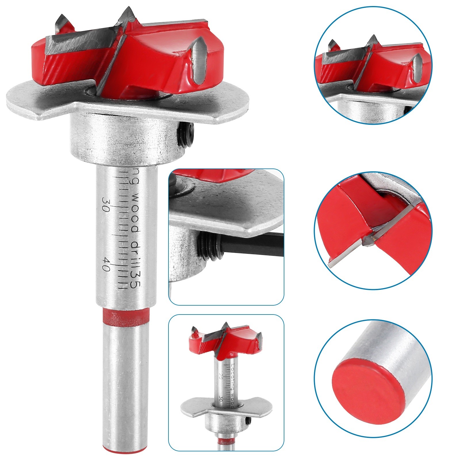 Inkluderet er et kvalitetsbor med skarpe skærehjørner, der er beregnet til arbejde med træ, laminat og pladematerialer. Den tre-tandede skærekonstruktion sikrer en jævn skæring, præcis dybde og glatte vægge i hullet, hvilket er afgørende for korrekt montering af beslagene og deres lange levetid.