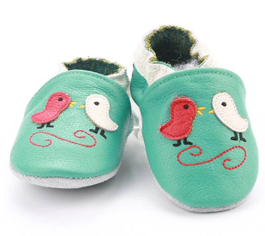 Børnesøfler med fugle er lavet af blødt læder af høj kvalitet.