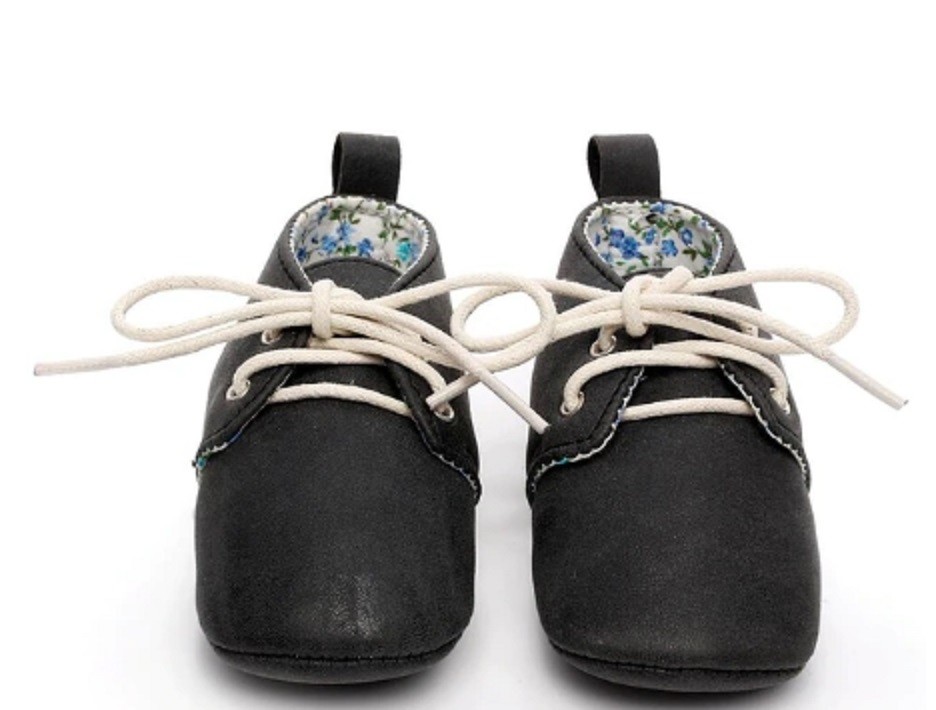 Børnemokkasiner i læder med snørebånd er velegnede til babyer i klapvogne, autostole eller bæreseler.