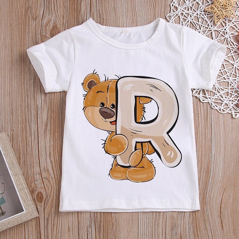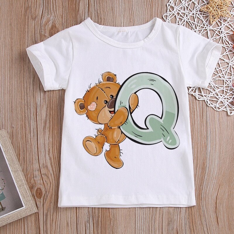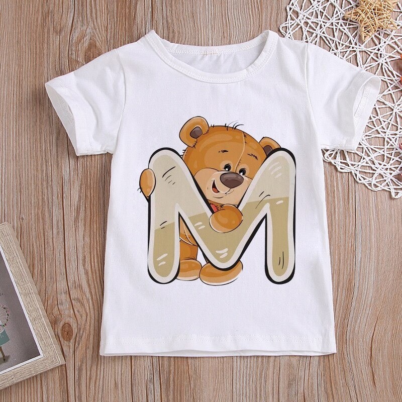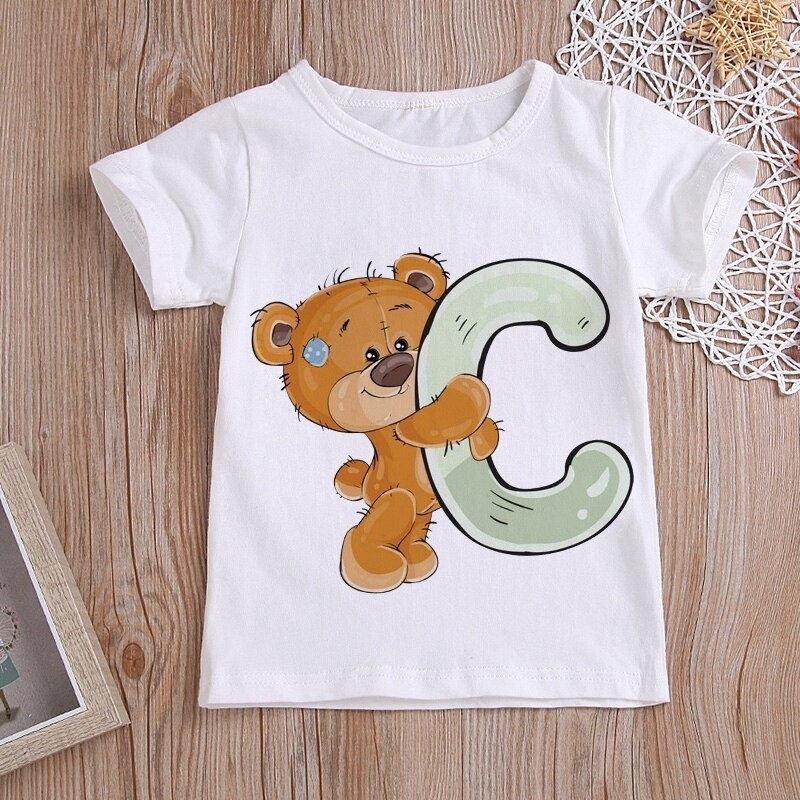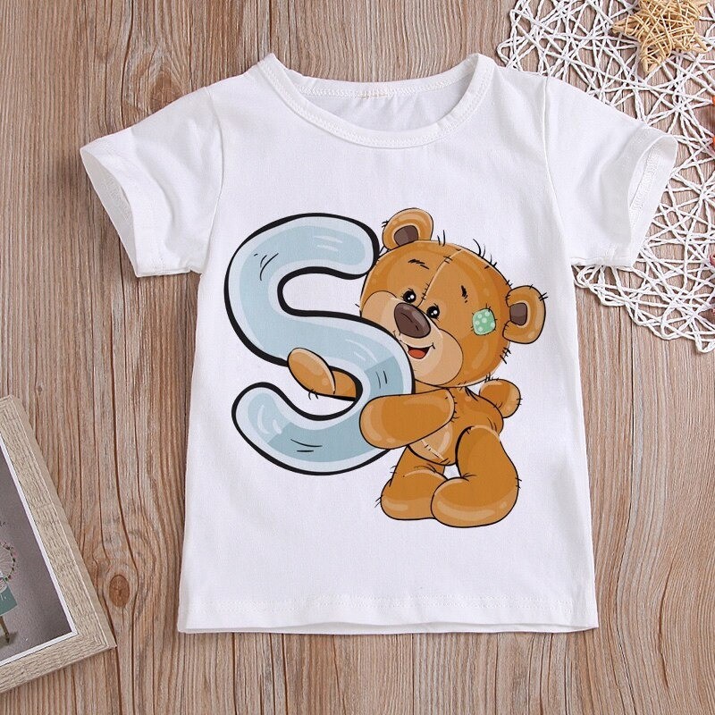 Med et bjørneprint med et bogstav.