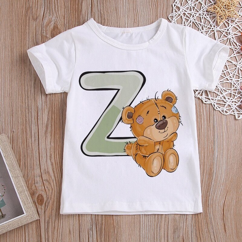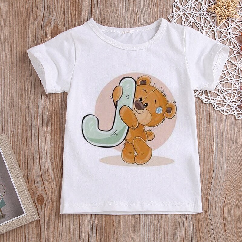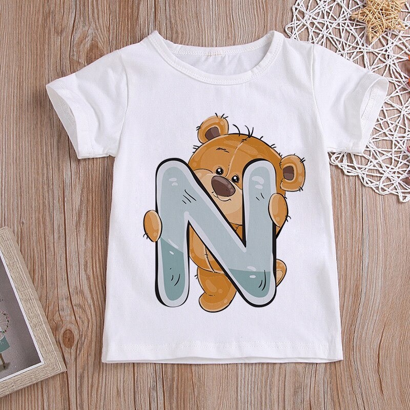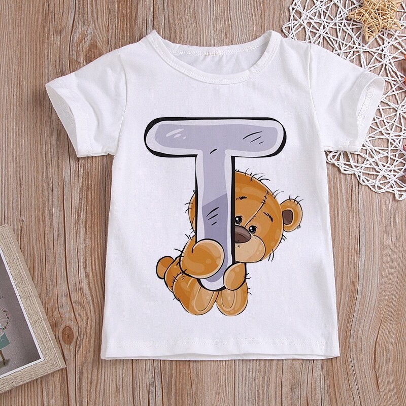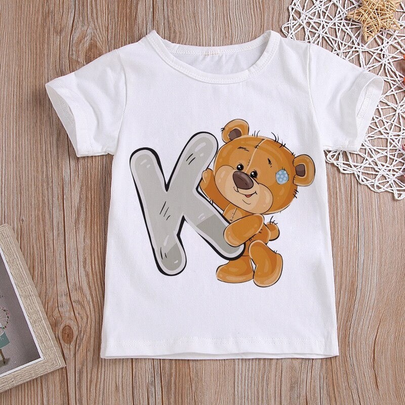 Med et bjørneprint med et bogstav.
