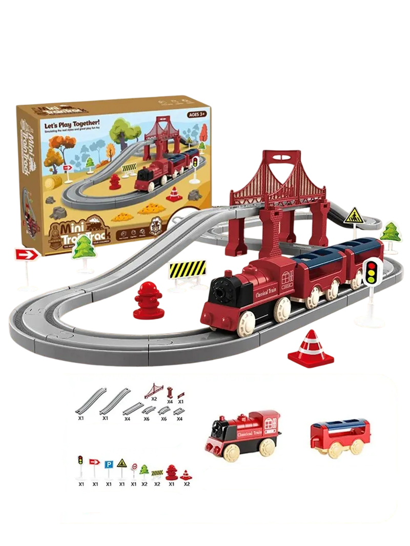 Elektronisk jernbane til børn lavet af plastmateriale med elektronisk tilbehør. Ideel til børn fra 3 år, udvikler motorik og kreativitet under leg. Fuld beskrivelse