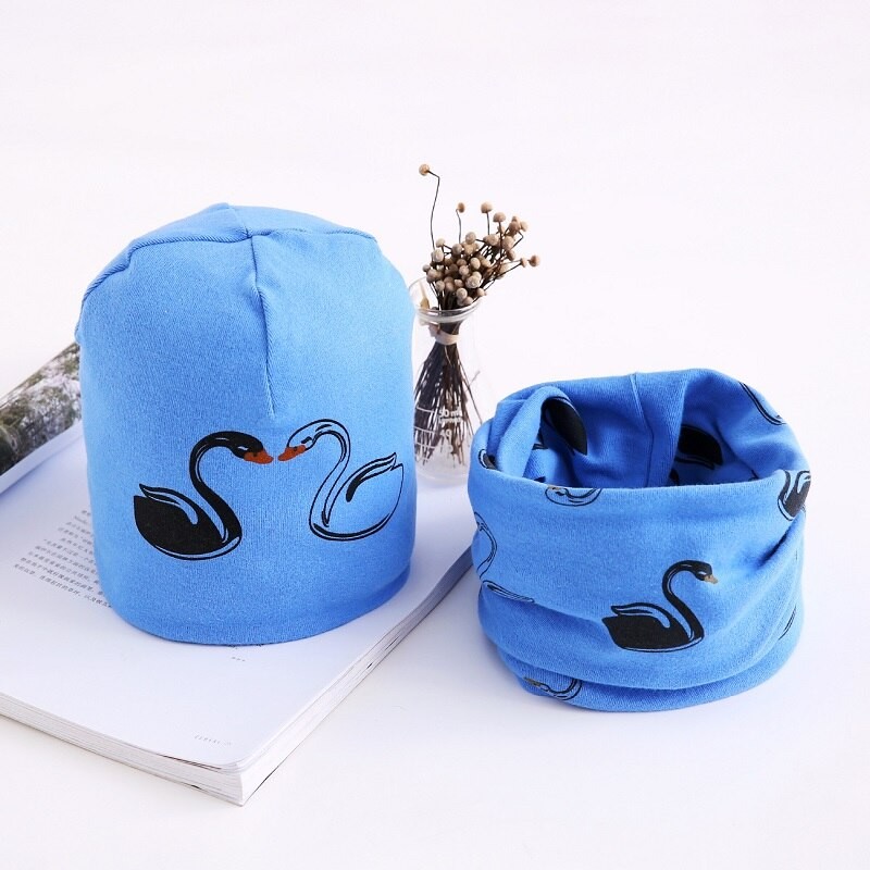 Børnehue og halstørklæde med svane