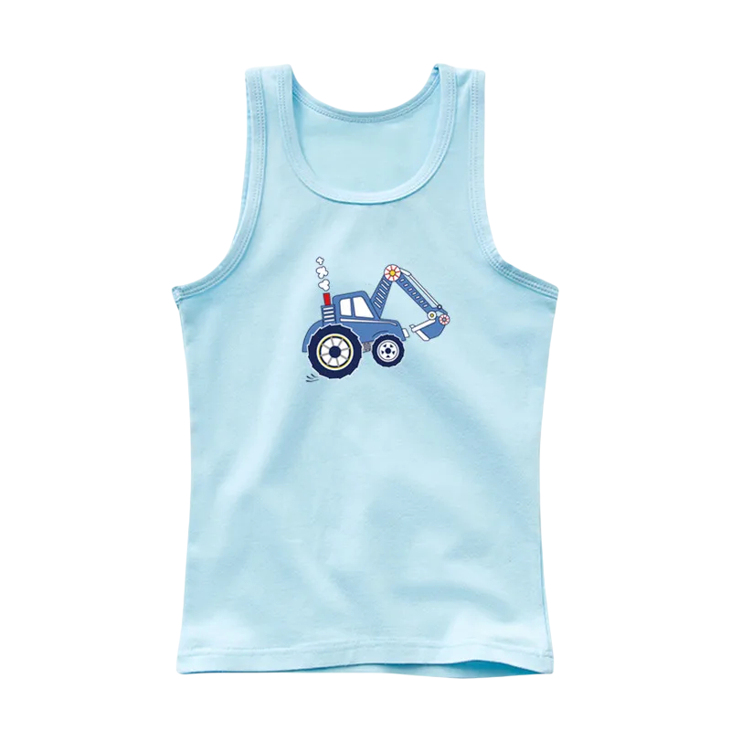 • Pakkens indhold: 1× børns bomulds tanktop med traktortryk