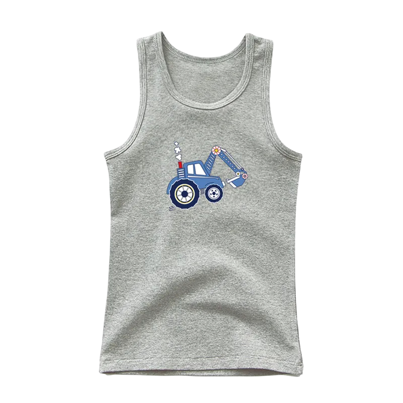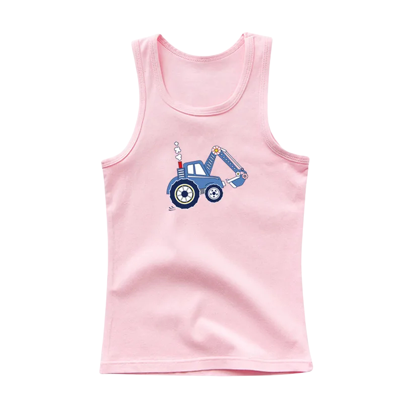 Børns bomulds tanktop med traktortryk Sommer top til drenge og piger Ensfarvet ærmeløs t-shirt med O-hals