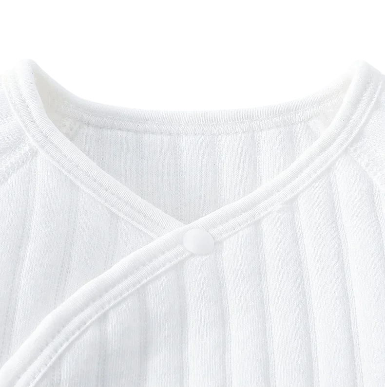 Børns bomuldsheldragt med lange ærmer og bjørn Unisex baby pyjamas med knapper og sløjfer V-hals Ensfarvet