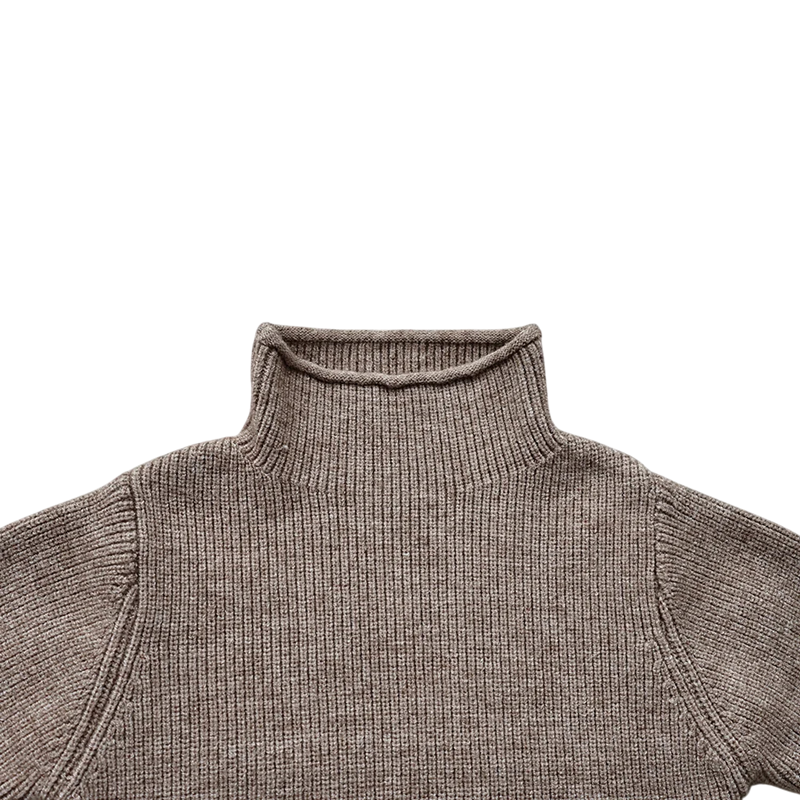 Stilfuld børnesweater med rullekrave lavet af blød bomuld og polyester, der holder varmen i efteråret og vinteren. Behagelig, strækbar og ideel til daglig brug og lag-på-lag. Fuld beskrivelse