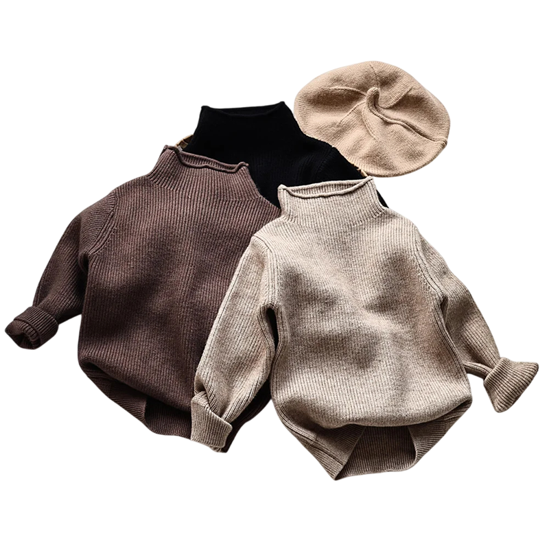 Forside Forside Tøj og tilbehør Børnetøj Tøj til de mindste Pigetøj til de mindste Pigestriktrøjer til de mindste Børns strikket rullekravesweater 12M–6Y Efterårs- og vinter ensfarvet top til drenge og piger Blød bomulds- og polyesterbasis sweater Forskellige farver