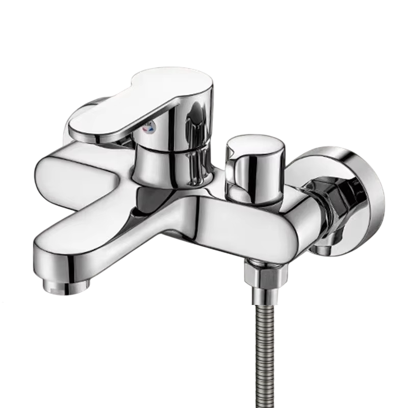 Bruserarmatur med tredobbelt blandingsventil og slange 150 cm Tre vandstrømsindstillinger Justerbar vægmontering Kromoverflade til badeværelse og badekar