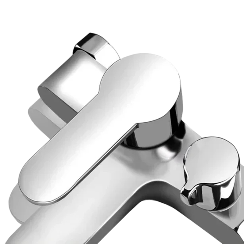 Forside Forside Hjem og husholdning Til badeværelset Badeværelsestilbehør Bruserarmatur med tredobbelt blandingsventil og slange 150 cm Tre vandstrømsindstillinger Justerbar vægmontering Kromoverflade til badeværelse og badekar