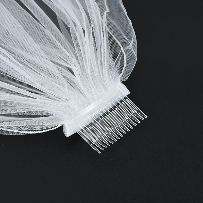 Dette korte bryllups slør er et fremragende valg for brude, der søger en diskret, men markant detalje. Takket være det lette design er det behageligt selv ved hel dags brug. Det passer til klassiske, minimalistiske og romantiske brudekjoler. Hvis du ønsker at tilføje et blidt og elegant element til dit bryllupslook, vil dette slør være et smukt og tidløst valg.