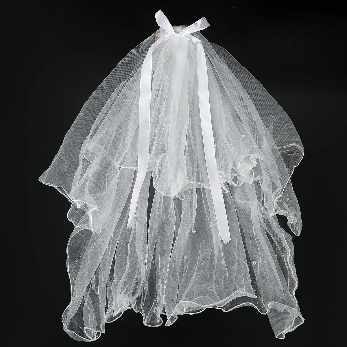 Forside Forside Tøj og tilbehør Dametøj Tilbehør til kvinder Hårtilbehør Bryllupsbue i håret Hvid tylslør med perler Elegant hårtilbehør til bruden polterabend