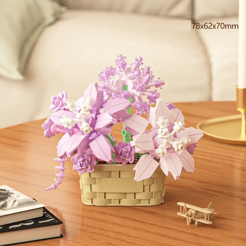 Byg selv Blomsterkrukke med elegant arrangement Dekorativ model af klodser Stilfuld boligindretning til hjemmet og kontoret
