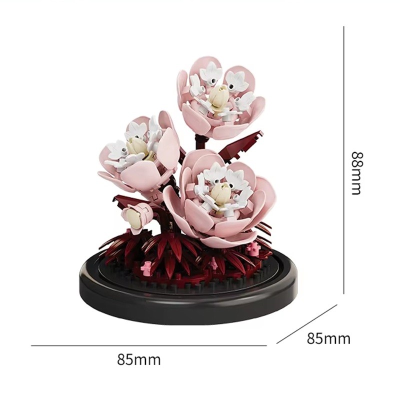 Byg selv pæoner 85 x 85 x 88 mm 167 stk Mikro blokke blomsterplanter i potte Kreativ model til hjemmet Gave til børn og voksne