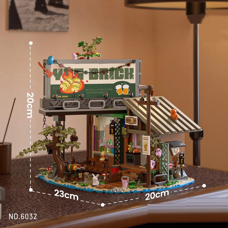 Dette detaljeret udarbejdede byggesæt repræsenterer en malerisk skovhytte ved søen med hyggelige siddepladser, et træ, dekorationer og en stor billboard på taget. Modellen måler 23 x 20 x 20 cm og er ideel som dekoration til indendørs brug, men også som et spændende projekt for byggeentusiaster. Hele sættet indeholder 1108 dele, som gør det muligt at skabe en realistisk scene med mange små elementer – træer, lys, mini tilbehør og indretningsdetaljer. Konstruktionen er stabil og tilbyder mange interessante vinkler til udstilling.