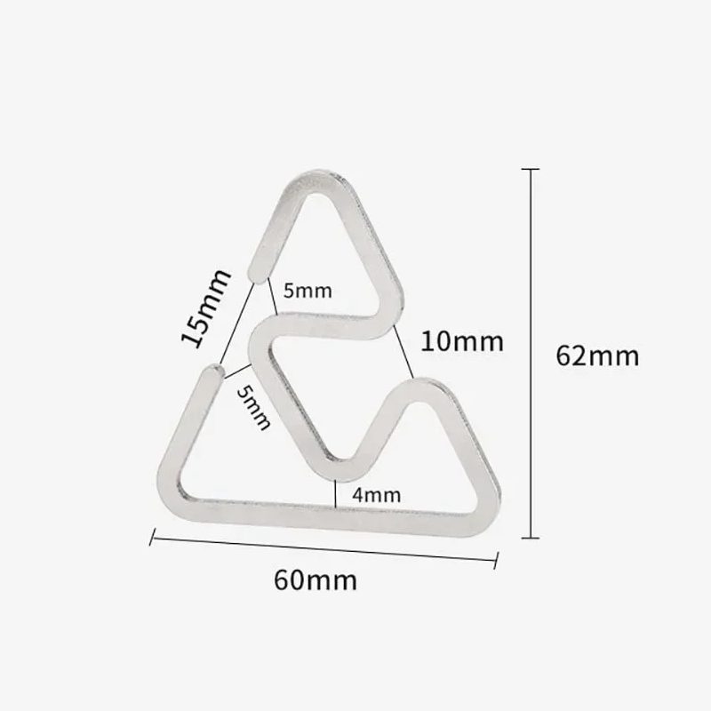 Forside Forside Sport og friluftsliv Camping og friluftsliv Rejsetilbehør Camping trekantet rustfrit stål krog 60 x 62 mm Let 18 g Holdbart campingudstyr til telte, vandreture og udendørs tilbehør
