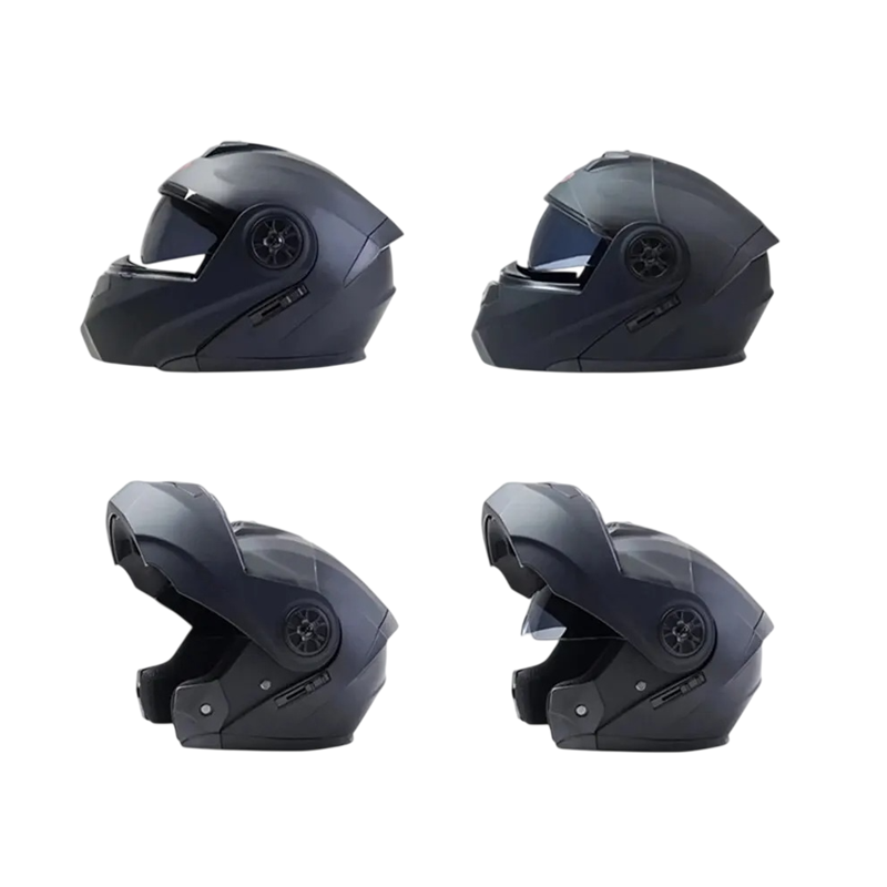 Denne celoansigt motorcykelhjelm er designet til ryttere, der søger en praktisk løsning til daglig kørsel og længere ture. Flip-up konstruktionen gør det nemt at bruge ved korte stop og øger komforten uden behov for at tage hjelmen af. Unisex udførelsen i sort farve virker universel og kan nemt kombineres med forskellige stilarter af motorcykeltøj. Hjelmen lægger vægt på klarhed under kørsel og beskyttelse af ansigtet. Den samlede konstruktion understøtter en fokuseret og rolig køreoplevelse.
