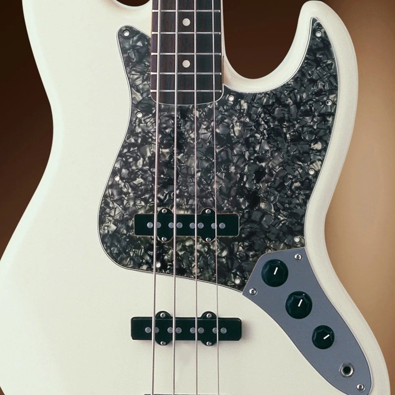 Perlemorsoverfladen giver guitaren et professionelt og luksuriøst udseende, der skiller sig ud på scenen såvel som i studiet. Dette dæk øger ikke kun den æstetiske værdi af instrumentet, men forlænger også dets levetid. Let konstruktion øger ikke instrumentets vægt og bevarer en komfortabel spiloplevelse. Takket være kompatibiliteten med amerikansk standard FD Jazz Bass er det en ideel tilføjelse til enhver bassist, der værdsætter kvalitet og detaljer.