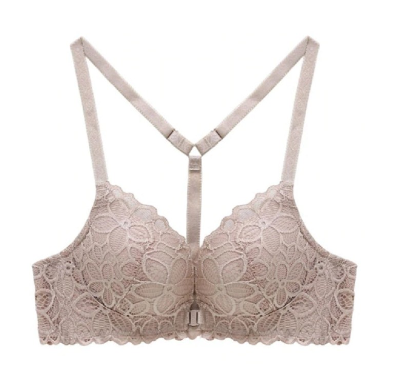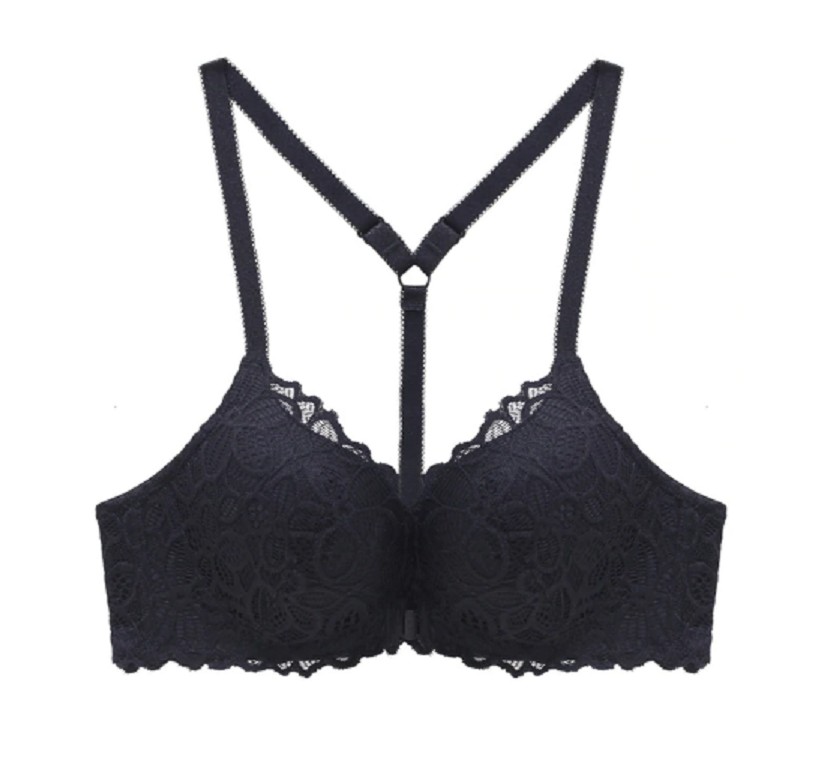 Dame-bh med blonde og lukning foran