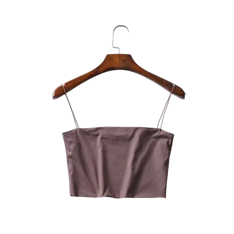 Dame crop top med tynde stropper er et moderne og behageligt stykke, der perfekt supplerer både sommer- og sportstøj. Den kortere længde af crop top'en fremhæver silhuetten og giver outfittet et friskt udseende. Det ensfarvede design gør det nemt at kombinere med leggings, shorts og nederdele. Materialekombinationen af polyester og spandex sikrer elasticitet, lethed og en behagelig følelse ved brug. Rund halsen har et tidløst udseende og er velegnet til daglig brug.