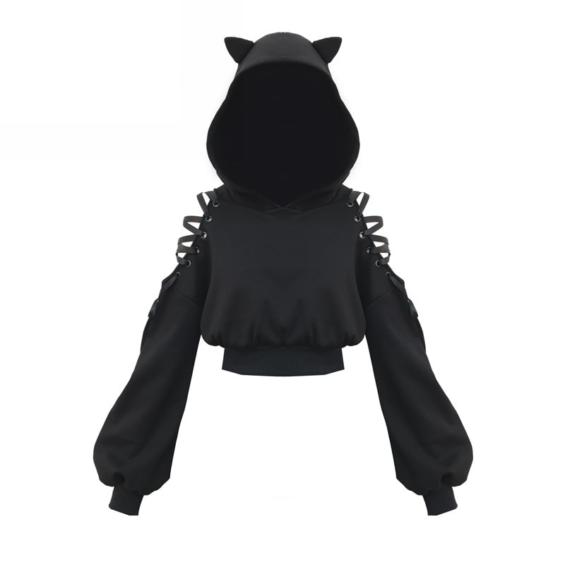 Dame cropped sweatshirt med udskæringer